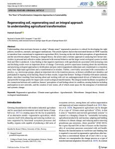 Regenerating soil, regeneration soul: an integral approach to understading agricultural transformation.