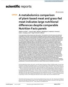 A metabolomics comparison of plant‐based meat and grass‐fed meat indicates large nutritional differences despite comparable Nutrition Facts panels.